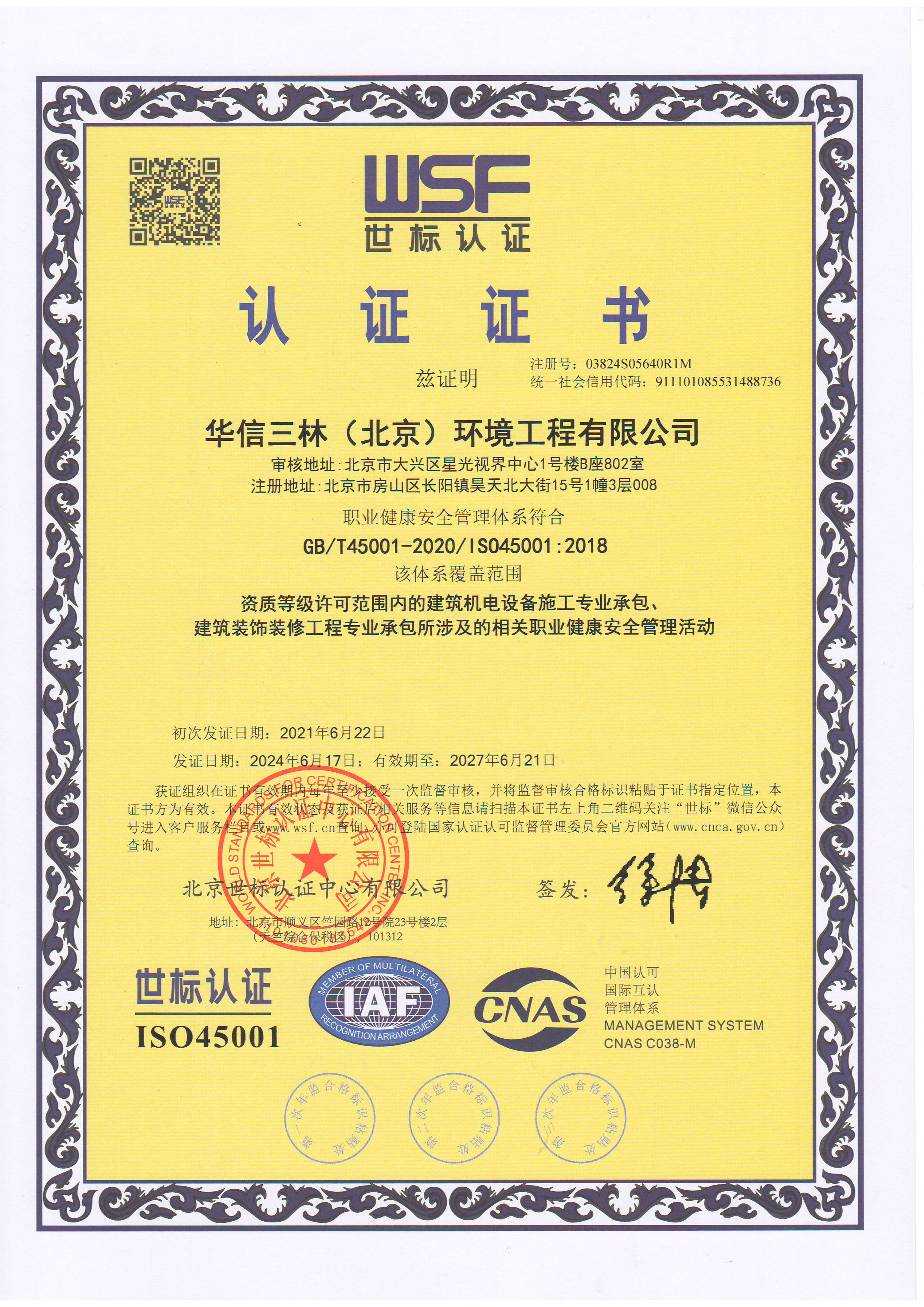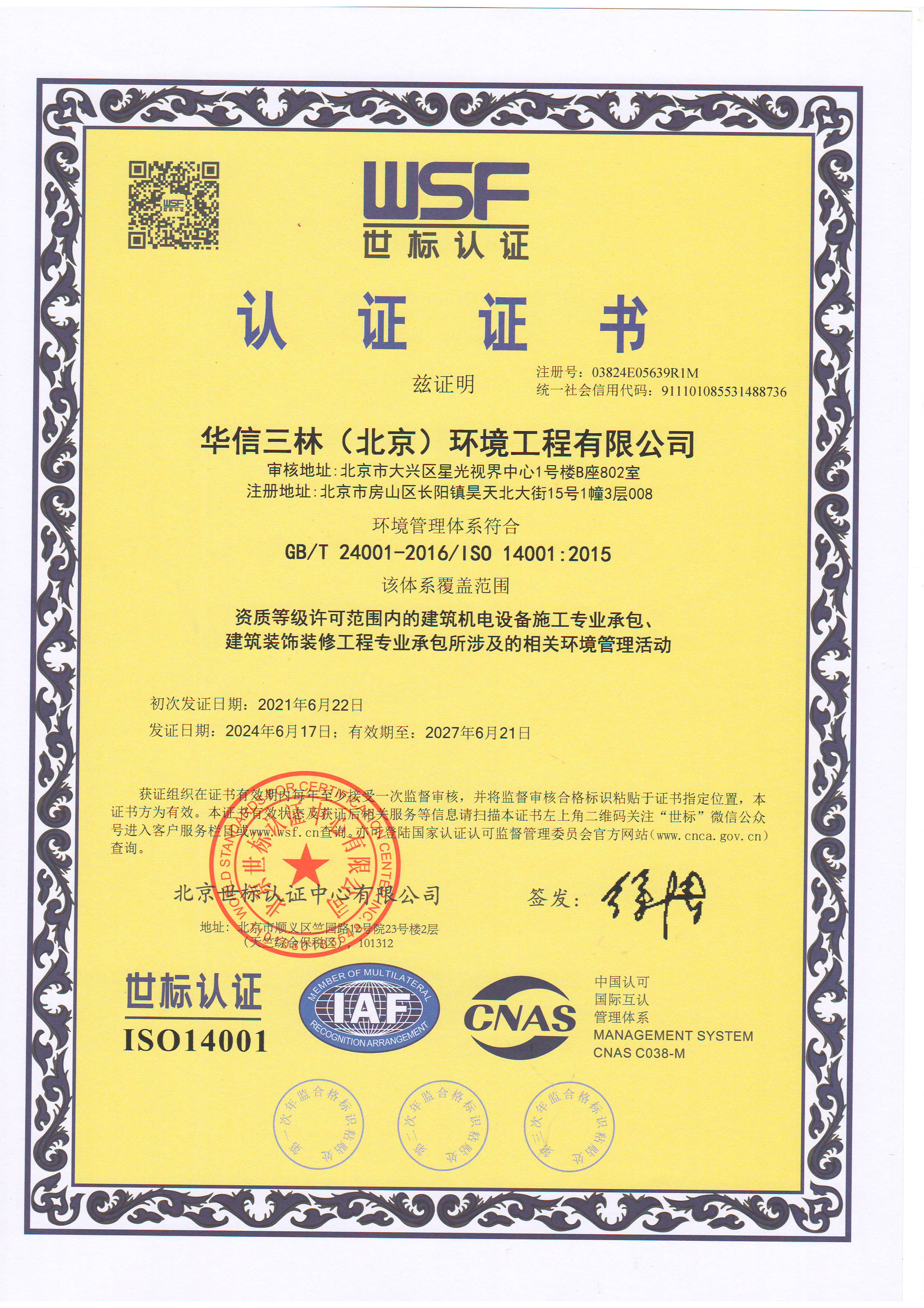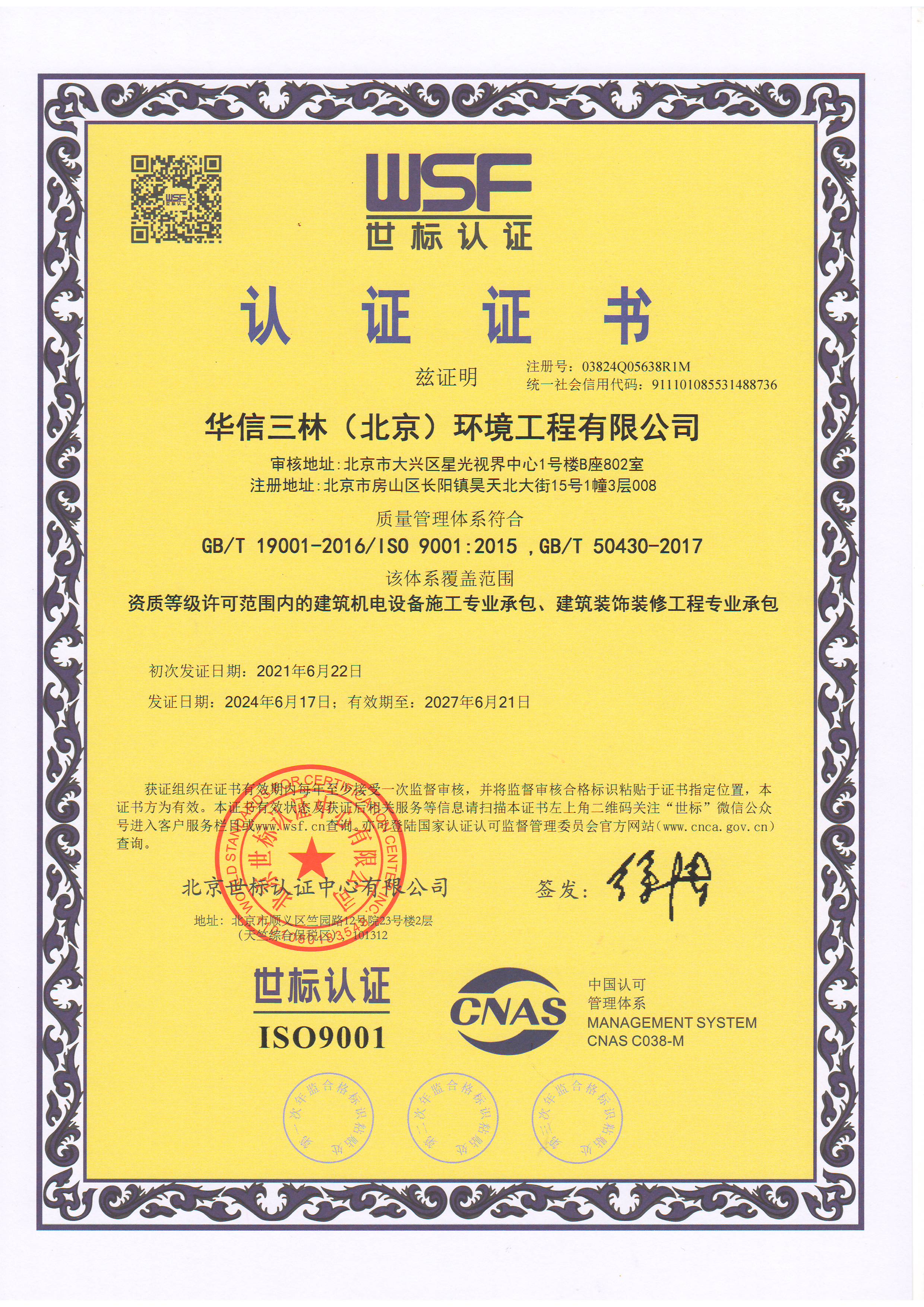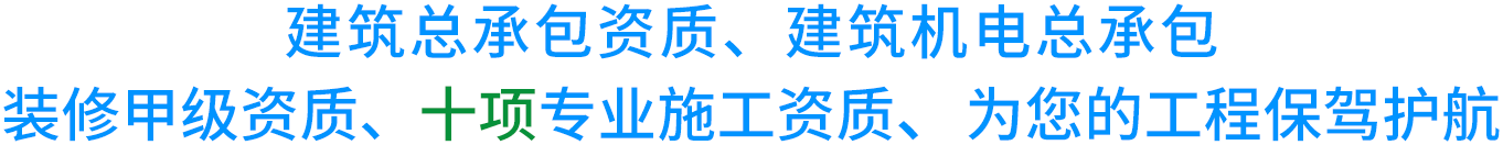 公司擁有國(guó)家建設(shè)主管部門(mén)頒發(fā)的建筑安裝工程施工總承包、建筑機(jī)電安裝工程專(zhuān)業(yè)總承包、建筑機(jī)電安裝工程專(zhuān)業(yè)承包叁級(jí)、建筑裝修裝飾工程專(zhuān)業(yè)承包貳級(jí)、電子與智能化專(zhuān)業(yè)承包叁級(jí)、環(huán)保工程專(zhuān)業(yè)承包叁級(jí)、安全生產(chǎn)許可證、環(huán)境管理體系認(rèn)證、質(zhì)量管理體系認(rèn)證、健康職業(yè)管理體系認(rèn)證。